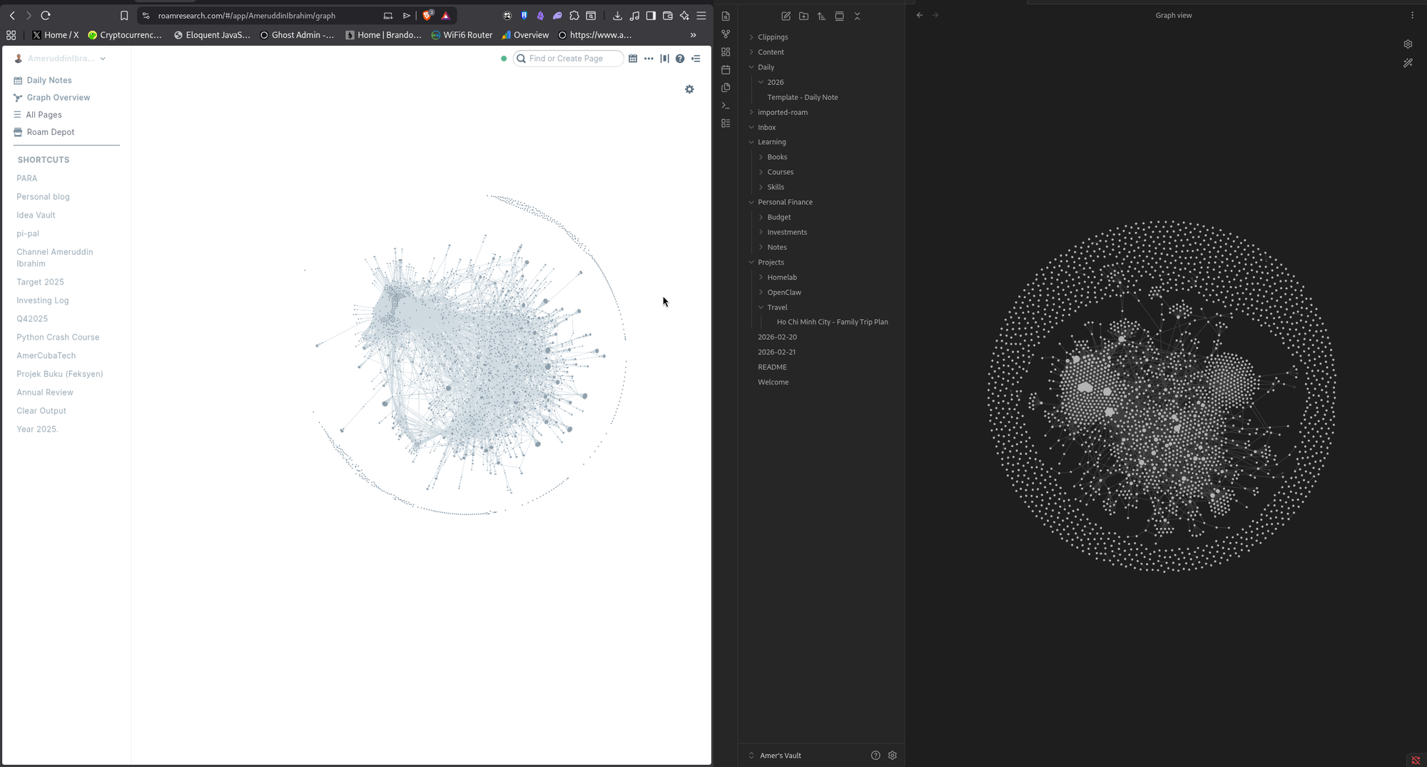 Saya ada lebih dari 2,700 pages dalam Roam Research. Ideas tentang ASB, Bitcoin, buku yang saya baca, notes tentang writing, semuanya campur aduk. Nak cari something specific? Guna 10 minit scroll dan search.