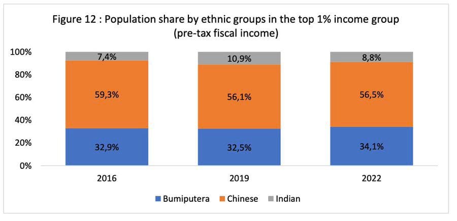 Serta bagaimana dalam tempoh 5-6 tahun, peratusan kumpulan pendapatan top 1% mengikut kaum tidak berubah? Di mana puratusan kaum Cina melebihi 55% diikuti dengan kaum bumiputera dan kaum India.