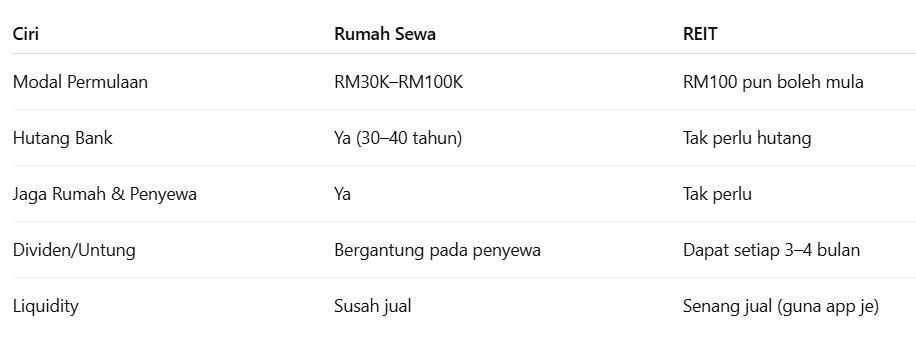 Ini gambar perbezaan antara REITs dengan rumah sewa.